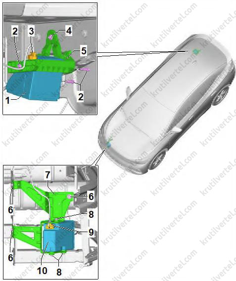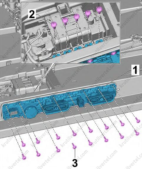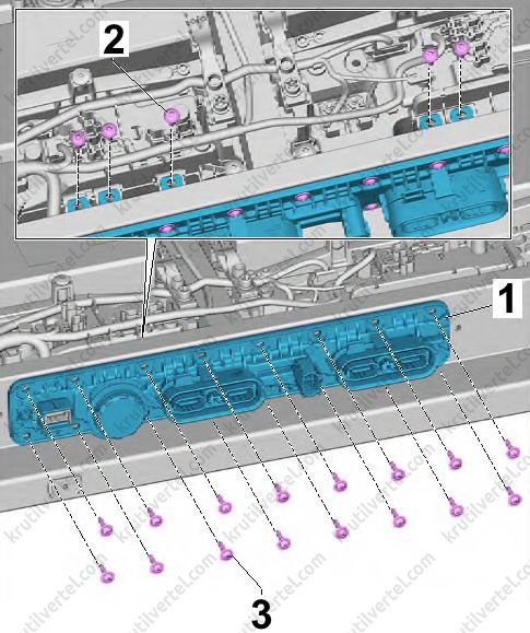 Снятие и установка модуля 1 генератора звука работы двигателя (RX21)