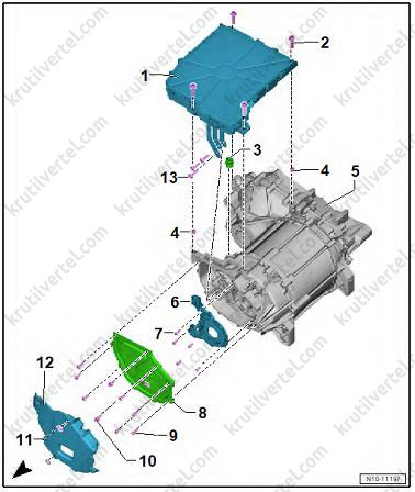 Снятие и установка зарядного устройства 1 для высоковольтной батареи (AX4) - только автомобили с полным приводом