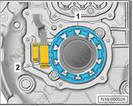 - Удалите загрязнения между корпусом и креплением разъема (2) с помощью сжатого воздуха и безворсовой ткани.