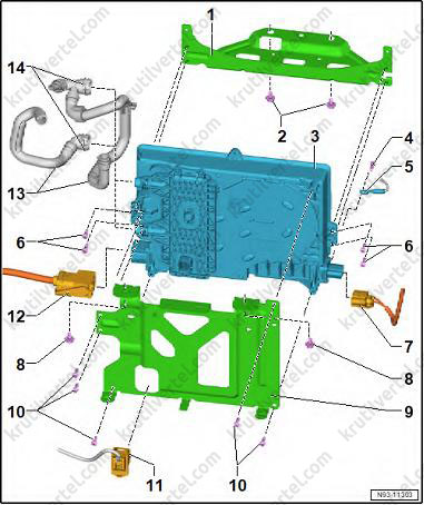 10. Установка выполняется в обратной последовательности. При установке обращайте внимание на следующие моменты: повторно включите высоковольтную систему.