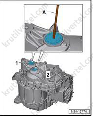 3. Запрессуйте новую уплотнительную крышку с помощью оправки (3062) (А) так, чтобы она была заподлицо с поверхностью коробки передач. Не допускайте перекоса уплотнительной крышки.